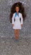 Stylish doll wearing a white coat with blue accents. Perfect for collectors.Not sure if she still works requires button batteries