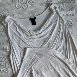 Solid white sleeveless tank top with cowl neckline