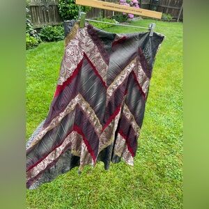 Vintage Coldwater creek skirt with a patchworky design, perfect for a regency/boho/renaissance faire kind of look. Full inner lining, zip closure.