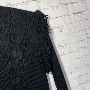 NWOT |•ESQUALO•| Black Cable Knit Fringe Shoulder Sweater Size Medium