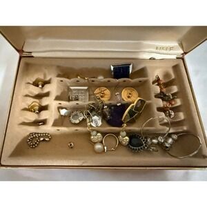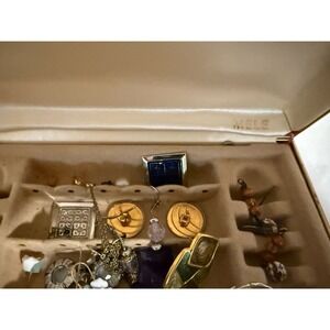 Keep your precious jewelry organized while on the go with this vintage felt travel case. The case comes with a selection of jewelry pieces, perfect for adding a touch of elegance to any outfit. The brand of the case is "Case", and it is designed specifically for jewelry care and organization.