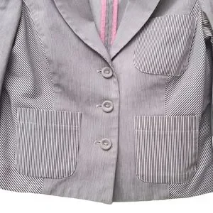 DIANE VON FURSTENBERG DVF Pinstriped Peplum Blazer 6 M Crop Jacket Seersucker