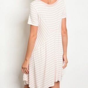 Ivory and Blush Striped T-Shirt Dress