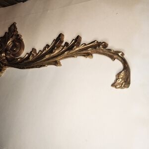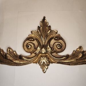 Heavy Solid Brass Pediment Center Cabinet Mount Brass Ornate Topper Ormolu Set 2