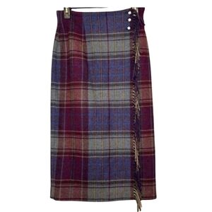 LAUREN Ralph Lauren Plaid Wool Fringe Midi Pencil Wrap Tartan Skirt Size: 6P
