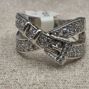 This stunning silver buckle ring adds a touch of elegance to any outfit. Perfect for any occasion.