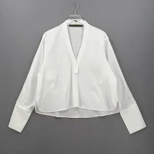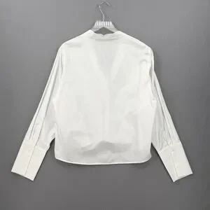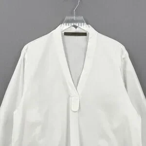 ENZA COSTA Poplin mariner Shirt Medium White V Neck Long Sleeve Quite Luxury NEW