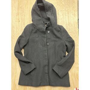 Babaton Coat Wool Cashmere Sz Large Hood Black Soft Button Up Trench
