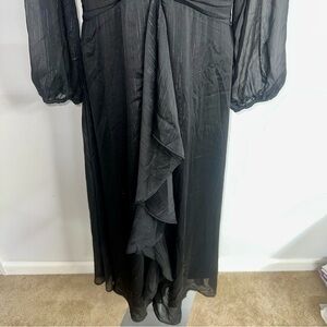 Black Ruffled Tiered Gown with V-Neck and Bishop Sleeves