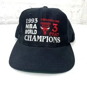 Chicago Bulls HAT World Champions THREE-PEAT 1993 Vintage Snap Back Black