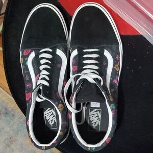 Vans Black Suede And Floral Patterned Sneakers Mens Size 11