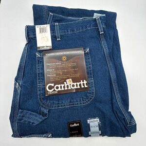 Carhartt Washed Denim Work Dungaree Jeans Mens 35x34 Single Knee B13 DST NWT NOS