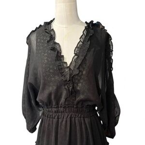 LOVESTITCH - Boho Black Midi Sheer dress with Gold Accents in Sz Small