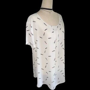 Sheer White Lipstick 💄 Print Women's Top Size XL