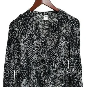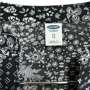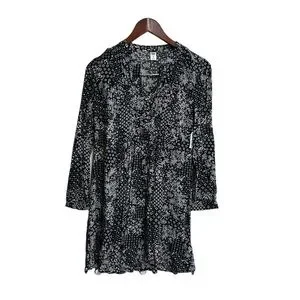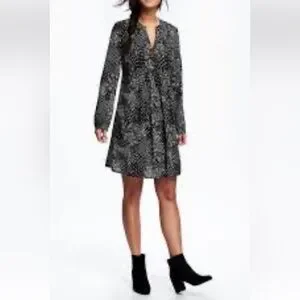 Old Navy pleated swing dress size XS black / white print long sleeves NWT