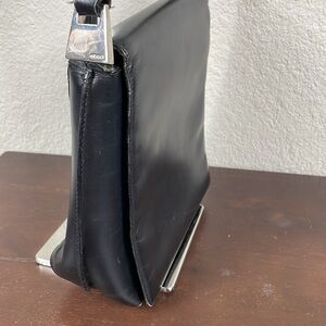Vintage Gucci Structured Foldover Flap Shoulder Bag Black Leather Evening