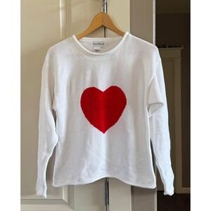 Women North Style White Pullover Roll Neck Sweater w/ Red Chenille Heart-Size M
