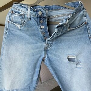Levis 501 CT Blue Jeans Unisex 29x30 Distressed Tapered Thrashed 100% Cotton 90s