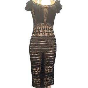 Vintage Y2K SPIGA Crochet Mesh black Dress Goth Grunge Fairy fit S & M/NEW .