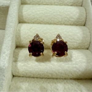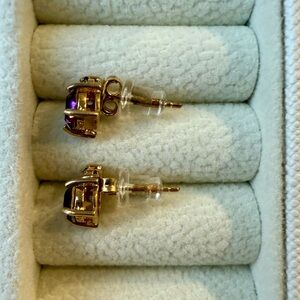 Enhance your style with these chic gold and deep purple earrings. Perfect for adding a touch of sophistication to any outfit.
