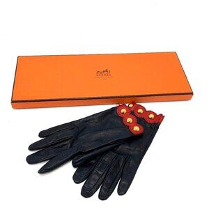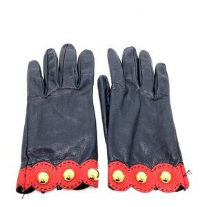 HERMES Fashion Accessories apparel Gloves Leather Navy / Red