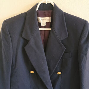 Vintage Liz Claiborne 4P Navy Blue Wool Double Breasted Blazer Gold Buttons