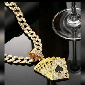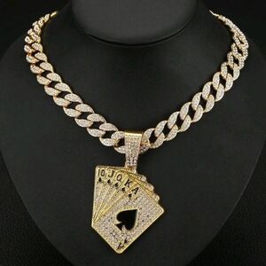 Hip Hop Iced Out Fully Rhinestone Sparkly Gold Playing Card Pendant & Cuban Chain Necklace is so shiny and very beautiful in person.