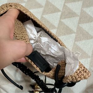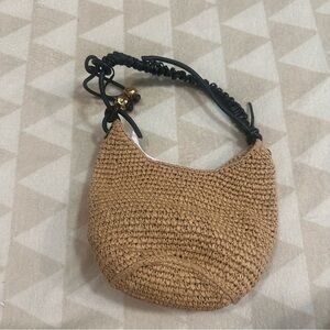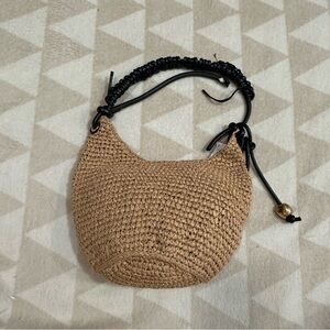 A natural addition to any outfit, this textural straw bag features a handwoven leather strap with intricate cutout detailing. Featuring a magnetic closure and room to hold your phone, keys and wallet, this bag is also available in a larger version.