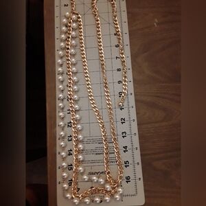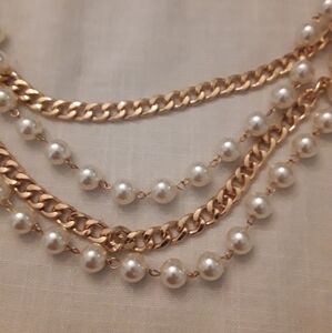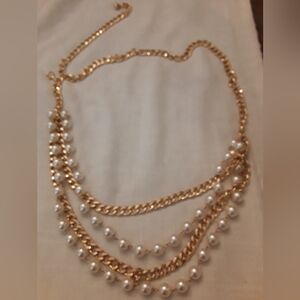 Fashion belt with gold and pearl chains.