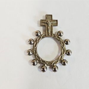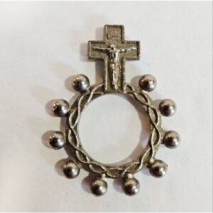 Vintage Italian Pocket Rosary Prayer Ring Crucifix Silver Tone Catholic Cross