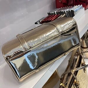 MICHAEL KORS Jet Set Medium Metallic Logo Debossed Satchel Pale Gold NWT