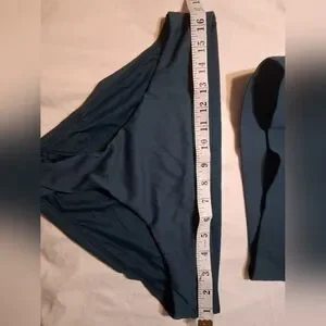 This two-piece swimsuit features a beautiful teal green color and a trendy ribbed texture.