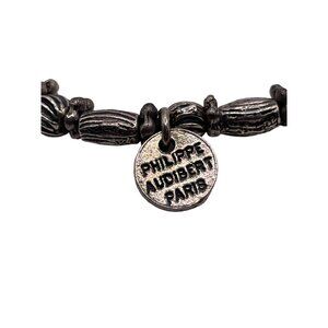 Vintage Philippe Audibert Paris Silver tone Beaded Metal Stretch Bracelet Signed