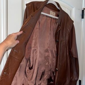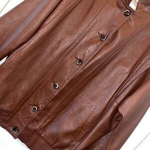 VINTAGE dark brown leather bomber jacket coat button up XL USA unisex