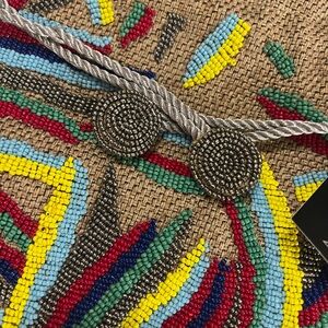 NWT This vibrant beaded bag is perfect for adding a pop of color to any outfit. Featuring a unique design with a mix of red, blue, yellow, and green beads, it's a stylish accessory for any occasion.