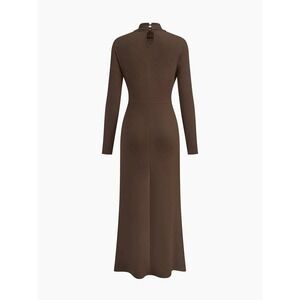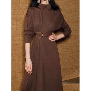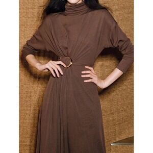 Commense Brown Turtleneck Maxi Dress with Gold Ring Detail Long Sleeve Size M
