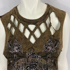 Affliction Women's Sleeveless Tank Top Wings & Roses Size L Distressed NWOT