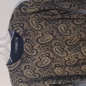 Lauren Ralph Lauren Gold Paisley Dressy Classic Elegance Woman's Sweater Top