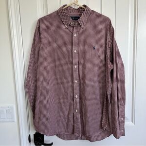 Ralph Lauren Men's Dark Red Gingham Plaid Long Sleeve Button down XL