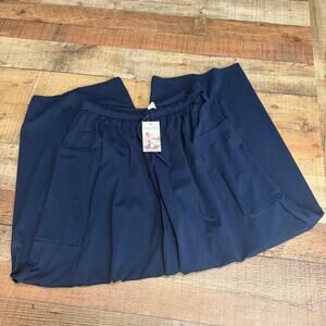 Halara NEW Wmn Navy Blue Pull-On Palazzo Flowy Wide Leg Pants Sz L Drawstring