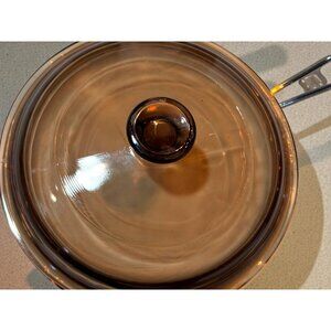 This amber glass saucepan by Pyrex Vision is a durable and stylish addition to cookware collections. Ideal for stovetop cooking.