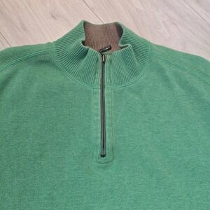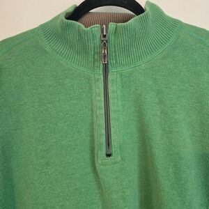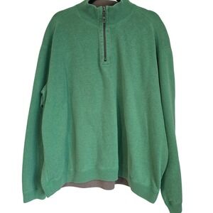 Tommy Bahama Quarter Zip Sweater Green Cotton Men's XXL Pullover Comfort Casual