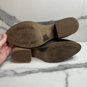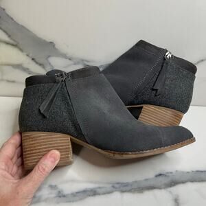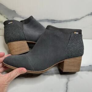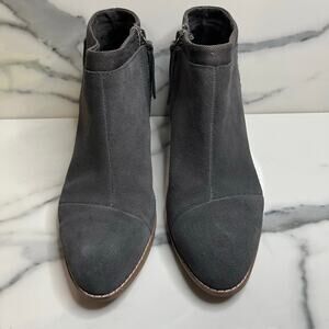 TOMS Wmn Gray Suede Closet Staple Side Zip Stacked Heel Loren Ankle Boots Sz 8.5