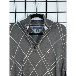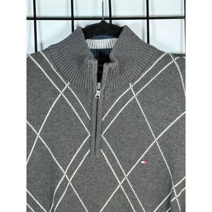 Tommy Hilfiger 1/4 Zip Argyle Sweater Mens XL Gray Eclectic Grandpa Preppy