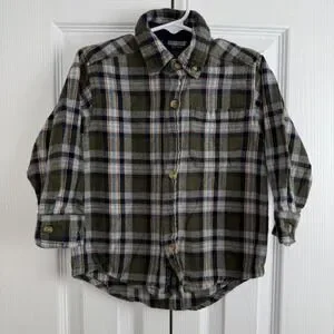 OshKosh B'gosh Kids Plaid Long Sleeve Button Down flannel Shirt Green Blue 4T