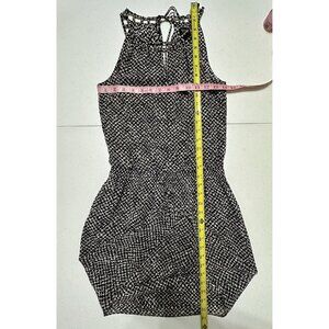 Keywords: White House Black Market dress, halter neck dress, sleeveless dress, black and white print dress, abstract print dress, drawstring waist dress, tie neck dress, keyhole neckline dress, XXS dress, summer dress, casual dress, brunch outfit, day dress