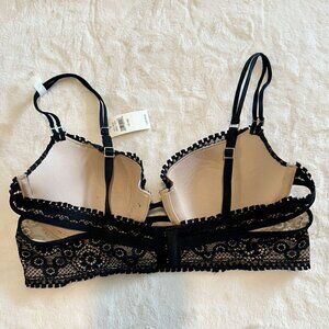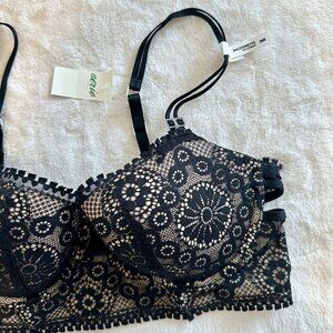 NWT Aerie Black and Cream Floral Lace Balconette Bra - 36B