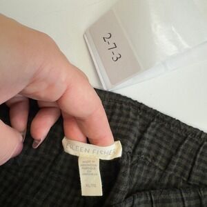 Eileen Fisher Pants Women X Large Green Black Puckered Organic Linen Tapered