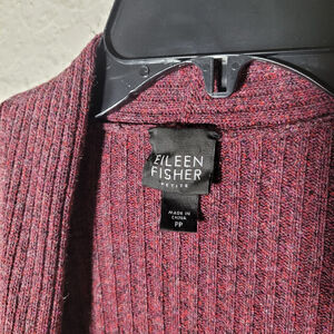 NWOT Eileen Fisher Women's Silk Long Sleeves Open Front Cardigan Burgundy PP