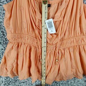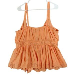 TORRID Eyelet Tie Front Tank Women SZ 1X Papaya Punch Coral V-Neck Scallop Beach